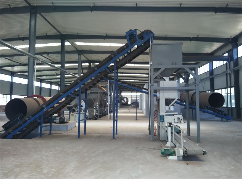 The main machines for the organic compound fertilizer disc granulator production line: fermentation turning machine or fermentation tank, automatic batching system, grinding machine, mixing machine, rotary drum granulator or pan granulator, rotary dryer machine, rotary cooler machine, rotary screener, rotary coating machine, packing machine, PLC controller, and belt conveyor to connect each machine.